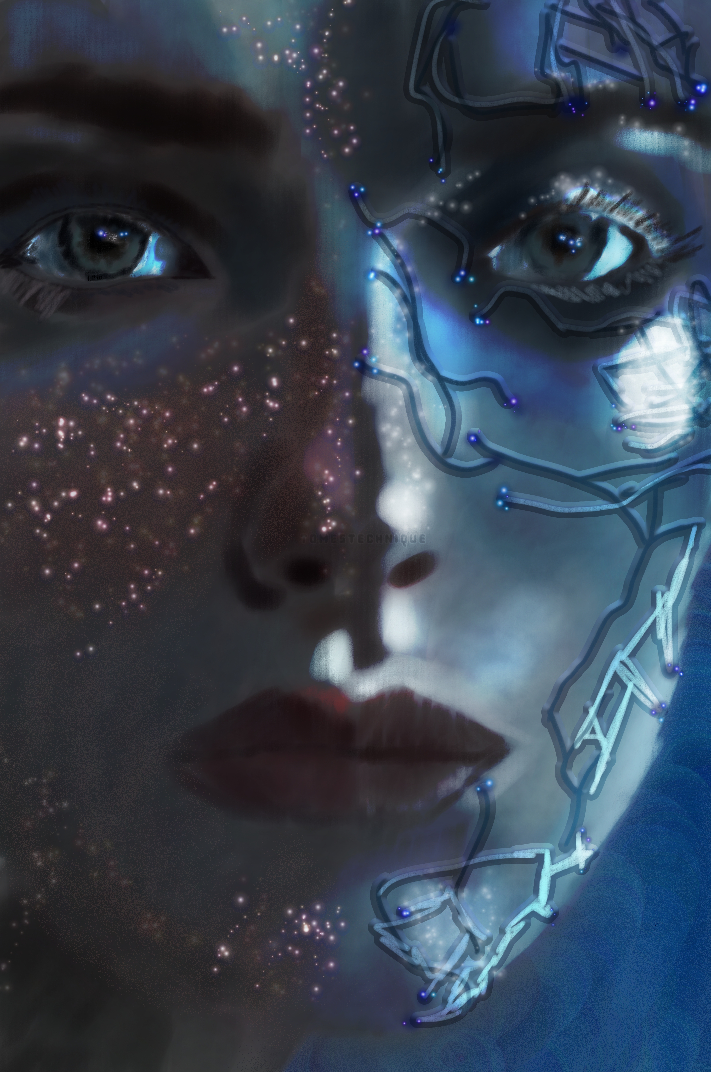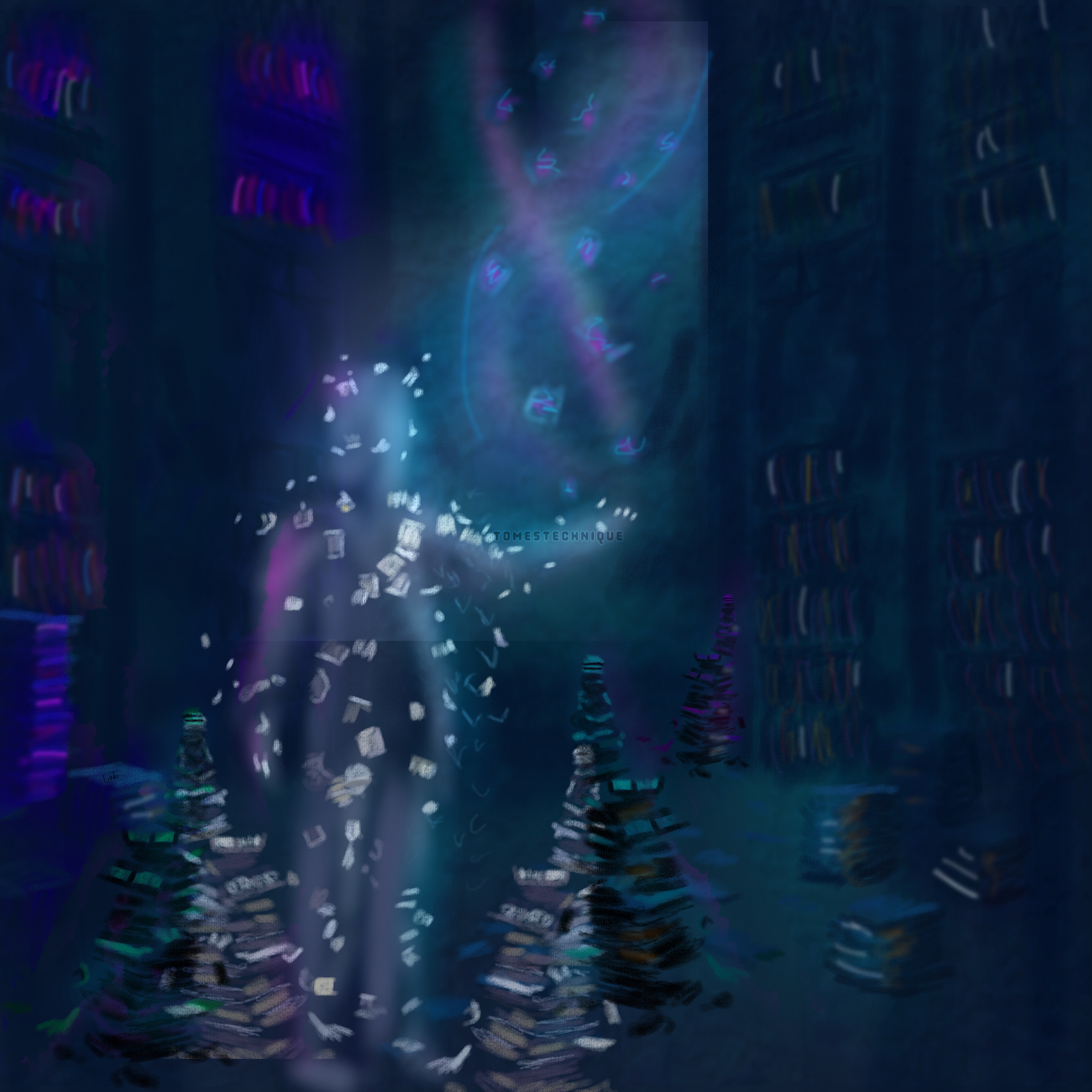 So many fun requests come in, but I get one for an interpretation of the goddess Ananke that steals my attention. Responsible for weaving the essential, the inevitable. She has no mercy, nor will. Simply puts fate into play. I’m asked to include a grid. Not bad, but it’s not quite it. The grid needs to be more organic.