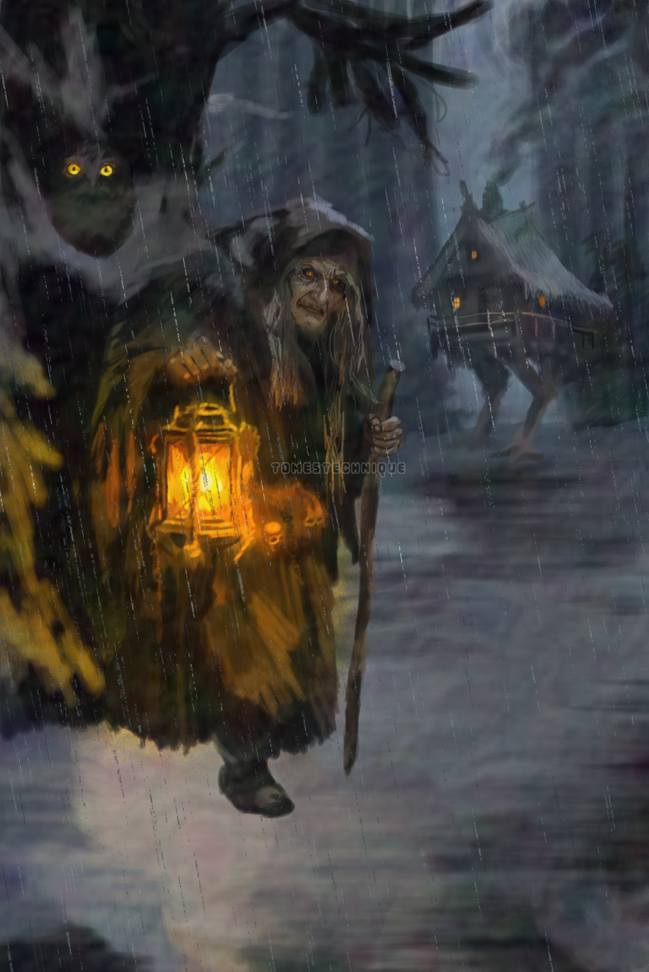 As a side project, I’ve started making the beginning stages of a deck of tarot cards. It’s themed with feminism, but without the extremist radicalism. Both mythical and real, it’s about empowerment for all women. It sounds cheesy, but it feels thrilling to render. The quiet hearth, the eternal flame, keeper of sanctuary — The Hermit. Baba Yaga does not guide; she waits, unseen, until the seeker has earned the right to walk their own path. She calls for self-reliance, courage, discernment. Her knowledge arrives through trial before revelation. To meet her, one must cross the wilderness of the mind, shed naïveté, endure uncertainty. Only then does she offer the lantern of insight, often hidden in shadow, often cloaked as threat.